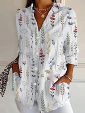 More information about Women's Shirt Button Down Tunic Shirt Collar Long Sleeve Floral Graphic Daily Stylish Retro Vintage Regular Tops Daily Holiday Going out s White Spring