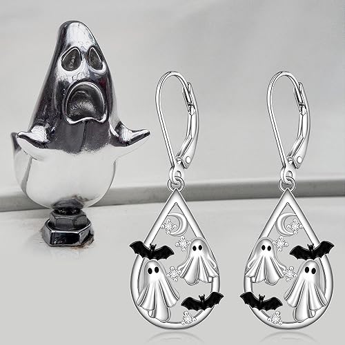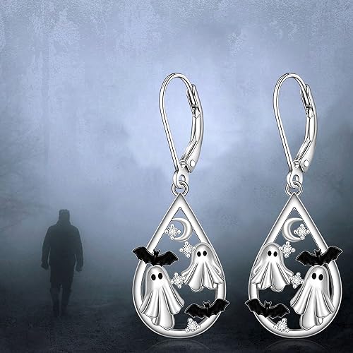 Halloween Earrings Bat Ghost Earrings for Women Sterling Silver Spooky Halloween Ghost Dangle Drop Bat Moon Earring Horror Holiday Jewelry Thanksgiving Gifts 6