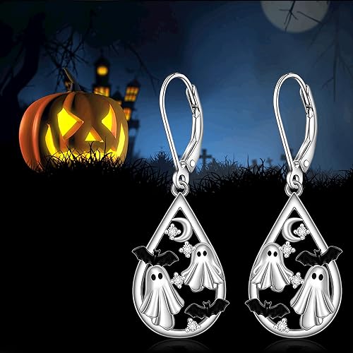 Halloween Earrings Bat Ghost Earrings for Women Sterling Silver Spooky Halloween Ghost Dangle Drop Bat Moon Earring Horror Holiday Jewelry Thanksgiving Gifts 7