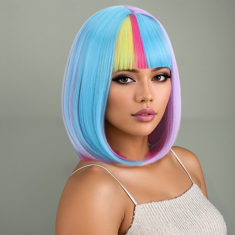 $24.99 - Synthetic Wig kinky Straight Natural Straight Layered Haircut Neat Bang Machine Made Wig 12 inch A1 Synthetic Hair Women's Soft Classic Color Gradient Mixed Color 2025. Shop for cheap Carnival Wigs online? Buy at lightinthebox.com on sale today!