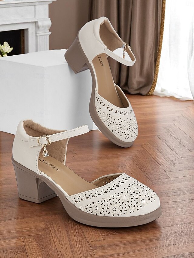 Women's Vintage Hollow-Out Mary Jane Shoes – Comfortable Low Block Heel Sandals with Adjustable Strap for Casual and Summer Wear 1