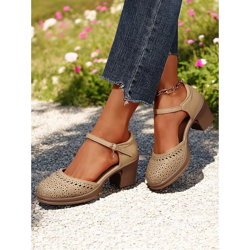 Women's Vintage Hollow-Out Mary Jane Shoes – Comfortable Low Block Heel Sandals with Adjustable Strap for Casual and Summer Wear 4