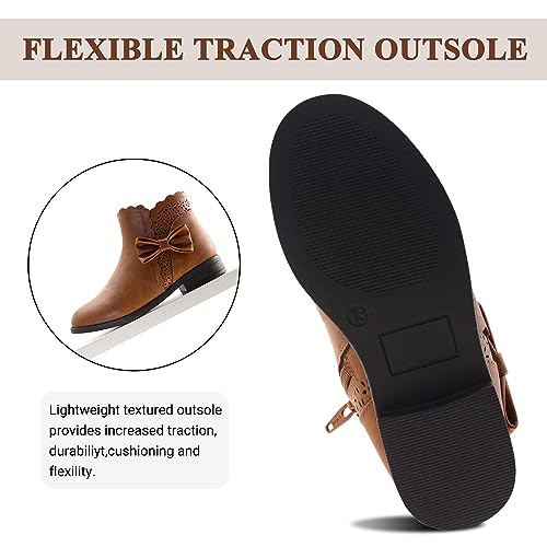 LseLom Girls Ankle Boots Kids Ankle Booties Bow Side Zipper Low Heel Outdoor Warm Shoes for Little Kids/Big Kids 4