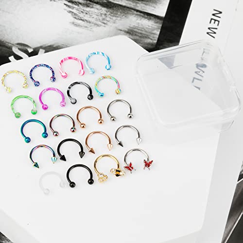 ONESING 20 Pcs 16G Lip Rings for Women Nose Piercing Jewelry Tragus Horseshoe Earrings Hypoallergenic Stainless Steel Pink 10mm