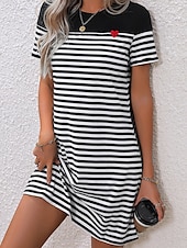 More information about Women's Mini Dress T Shirt Dress Tee Dress Stylish Casual Vacation Daily Regular Fit Stripe Short Sleeve Crew Neck Black Summer