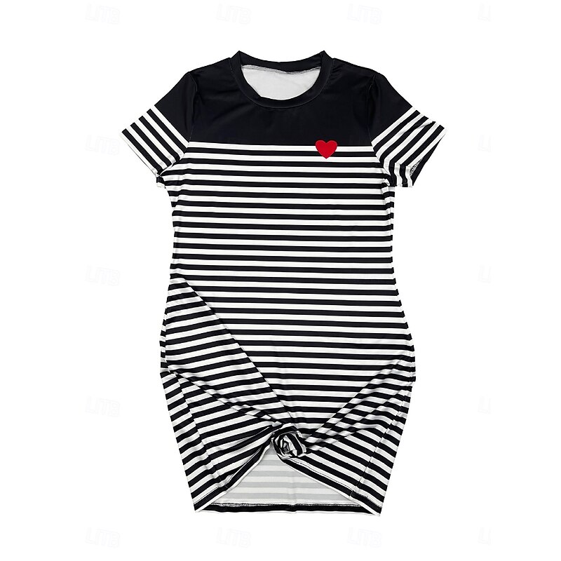 HOT ! Women's Mini Dress T Shirt Dress Tee Dress Stylish Casual Vacation Daily Regular Fit Stripe Short Sleeve Crew Neck Black Summer