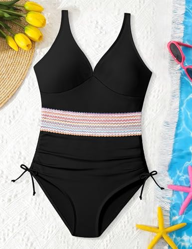 • 🌴 【Unique Swimsuit】 The girls one-piece swimsuit features a color-block stitching design, removable pads, and comes with adjustable shoulder straps and side drawstrings. Provides full coverage and comfort, wear it to enjoy summer and the beach!