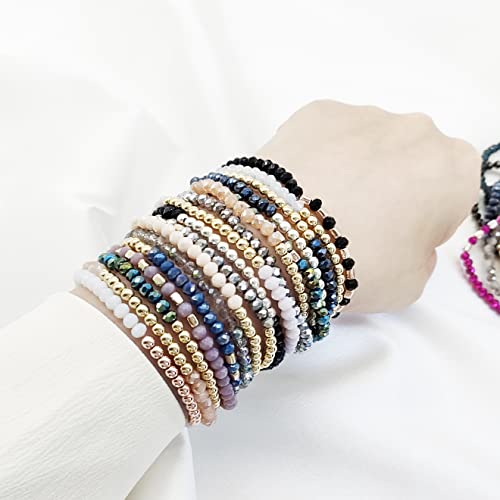 • 【BEADED BRACELETS SET】This elastic crystal bracelets set contains 35 bracelets of different colors that can be worn alone, stacked, or shared with loved ones.