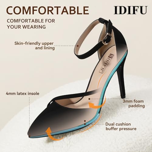 sought-after ! IDIFU IN4 Women's Pumps Closed Toe Heels Stiletto High Heels Dress Shoes for Women Wedding Prom Dressy Party Bridal Shoes Trendy Strappy Pointed Toe Ankle Strap Heels Pumps