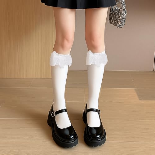 Lace Knee High Socks Cute White Knee High Socks For Women Girl with Lace Ruffle Trim and Bow-knot Soft Princess Loli Sock for Loli Clothing Accessories 1