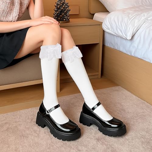 Lace Knee High Socks Cute White Knee High Socks For Women Girl with Lace Ruffle Trim and Bow-knot Soft Princess Loli Sock for Loli Clothing Accessories 4