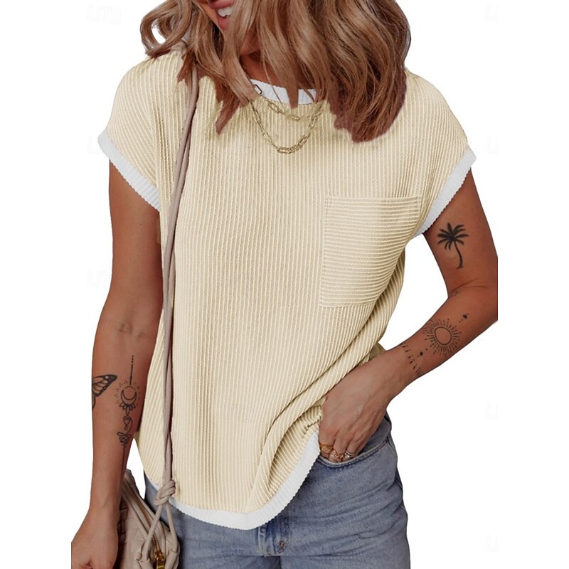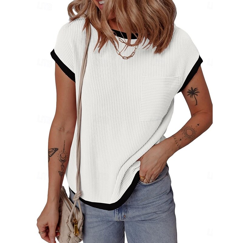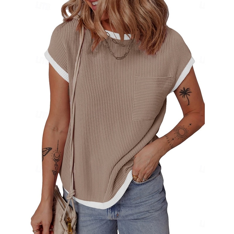 sought-after ! Women's T Shirt Plain Fashion up-to-date Casual Short Sleeve Crew Neck Regular Tops Daily Weekend Black White Pink Army Green Khaki Summer