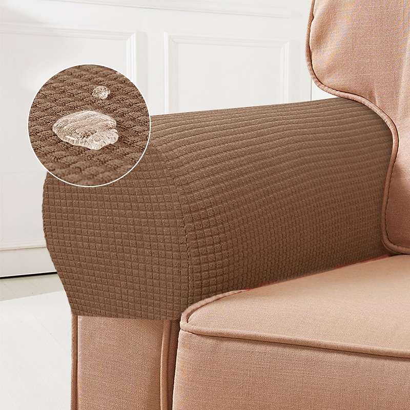 Highlights About this item: 1. HIGH QUALITY MATERIAL: Made with spandex premium fabric that is softer, more flexible and easy to stretch. Our armrest covers are suited for more than 90% of fabric chair armrests. Please Note: Our cover is more suitable on fabric sofas. 2. FUNCTION: Give your armrests a brand new look while protecting them from daily wear and tear, stains, and scratches. Extend the life of your armrest or fix a broken and worn out armrest quickly and effortlessly. A must-have for homes with children and pets. Easy installation and removal, machine washable. 3. EASY CARE: Machine washable, Wash in cold water on agentle cycle with mid laundry detergent, Do not use bleach, Iron on a low heat. 4. SLIGHT COLOR NOTE: Please note that slight color difference should be acceptable due to the light and screen. DETAILS DETAILS WATER REPELLENT EASY CARE