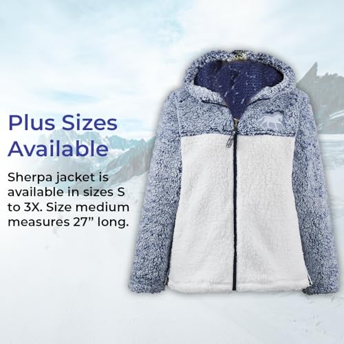 • PLUS SIZES AVAILABLE Sherpa jacket is available in sizes S to 3X. Size medium measures 27” long.
