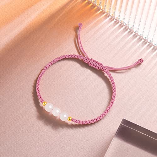 HOT ! 24K Solid Gold Bracelets for Women, Real Pure Gold Adjustable Friendship Gold Bead White Jade Bead Bracelet Green Pink Braided Bracelet for Women Men Mom Girlfriend