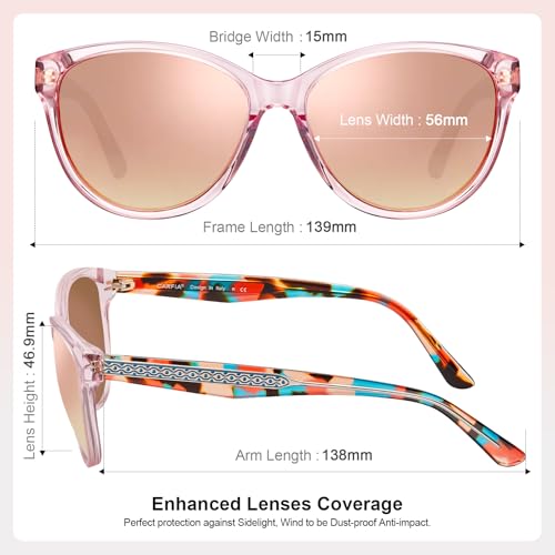 • Leather Sunglasses Case - We send Embossed Leather Case for better glasses storage. Rich package including: Womens Pink Sunglasses, Soft Cleaning Cloth, Specific Instructions, Polarization Testing Card & Hard Protection Box. We also support 1-Year-Warranty, if eyewears has any issues, please contact us for satisfactory solution.