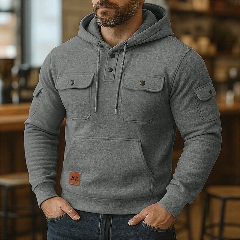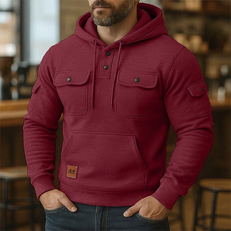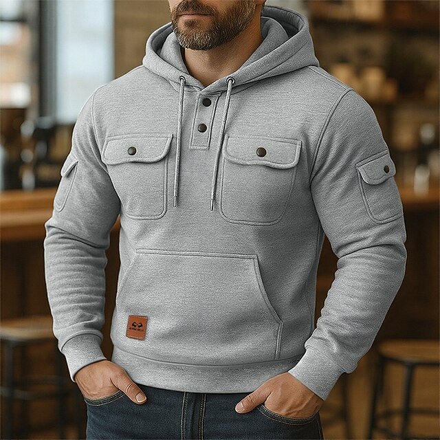 Why Choose Men's Hoodie Button Up Hoodie Fleece Hoodie Tactical Hoodie Black Burgundy Navy Blue Blue Khaki Hooded Plain Multi Pocket Sports & Outdoor Casual Daily Streetwear Cool Sportswear Spring & Fall?