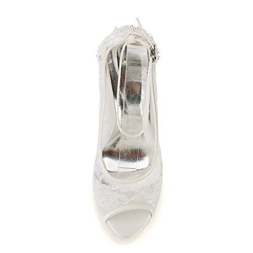 HOT ! Emily Bridal Wedding Shoes Silk High Heel Peep Toe Pearls Detail Slip on Pumps