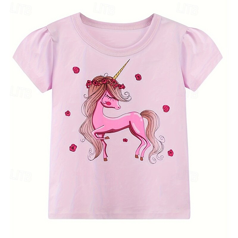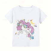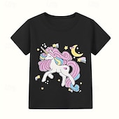 100% Cotton Kids Girls' Black White Cartoon Unicorn T shirt Tee Crew Neck Short Sleeve Outdoor Daily Vacation Classic Casual Print Summer 5