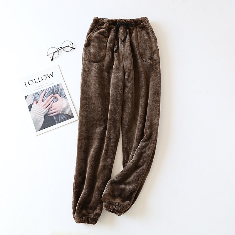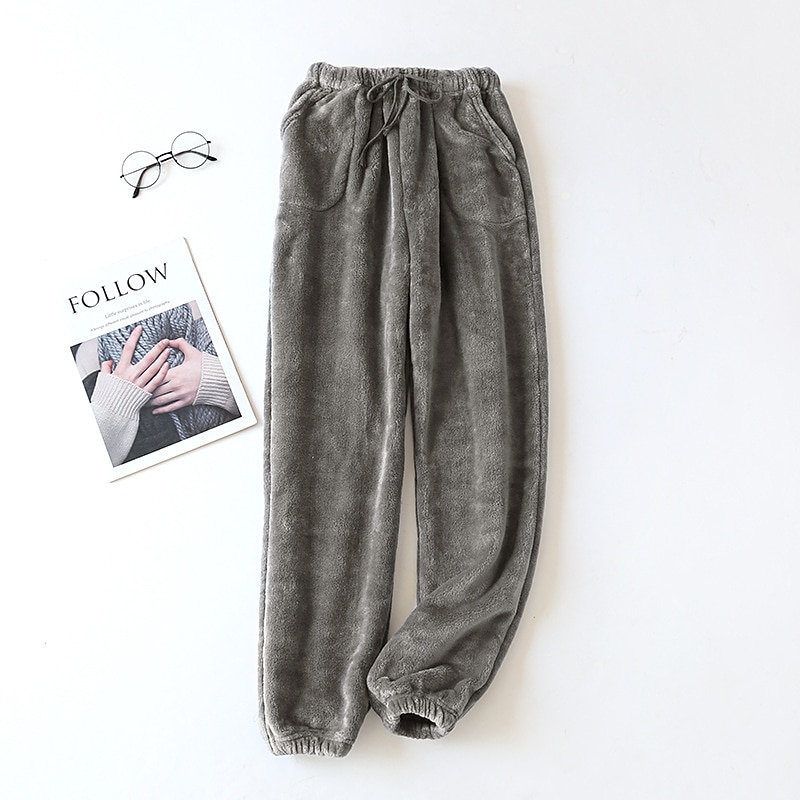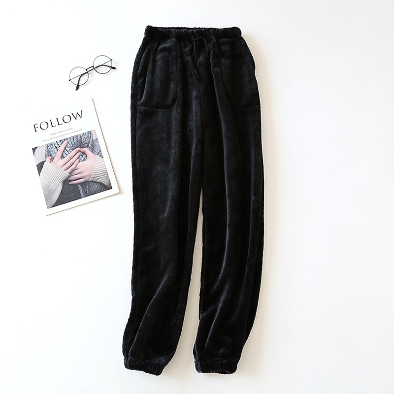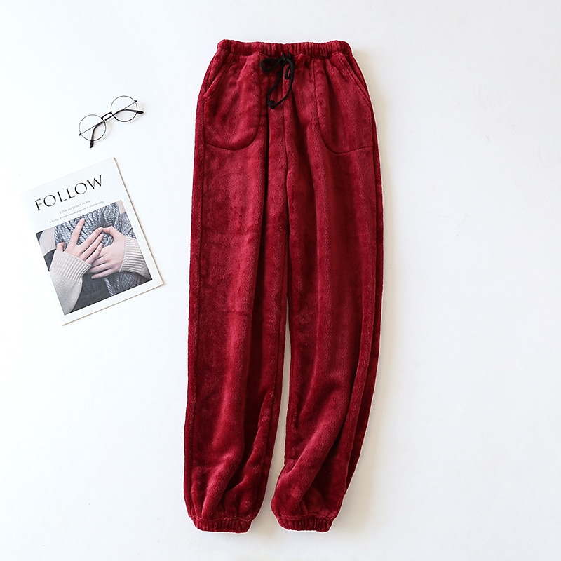 Highlights [Fabric] : Crafted from soft, plush fleece, these women's pajama pants offer a cozy and luxurious feel against the skin. The material provides excellent warmth, making it perfect for the colder fall and winter months. [Fit] : Featuring a relaxed, loose fit, these pants offer maximum comfort and ease of movement. The elastic waistband comes with a drawstring for a snug and adjustable fit, and the cuffed hems enhance the overall comfort and style. [Design Highlights] : The simple yet stylish design incorporates an elastic waist and clean, pure color pattern, making these pants a staple for your comfort wardrobe. Available in a variety of colors, they can easily pair with other loungewear items for a coordinated look. [Occasions] : Perfect for daily use, lounging at home, or a cozy night in bed. These pants are designed for casual comfort, making them suitable for various home activities during the fall and winter seasons. They also make an excellent gift due to their stylish practicality. [Size Range] : Available in sizes M, L, XL, and 2XL, these pajama pants cater to a range of body types, ensuring that you can find the perfect fit for your comfort and style needs.