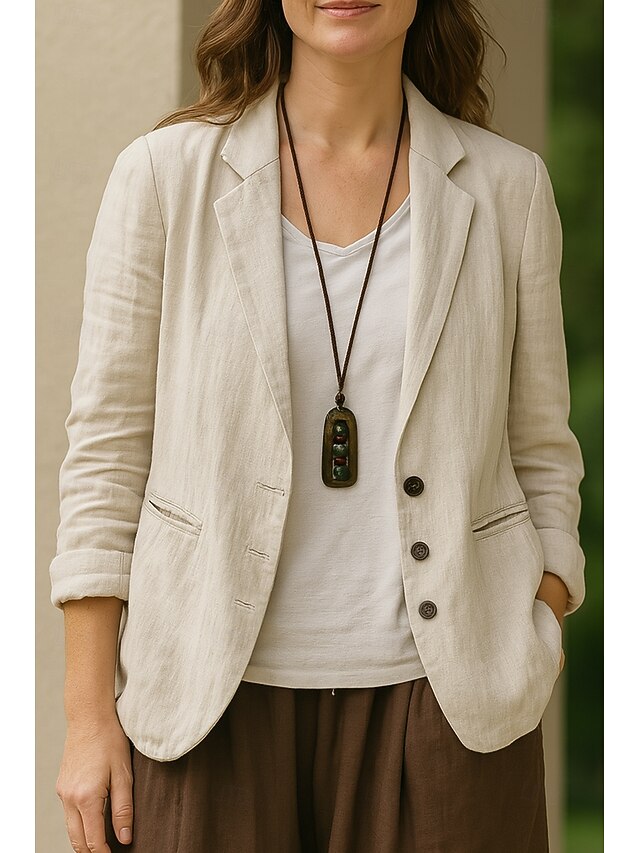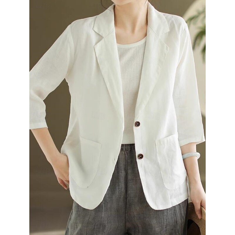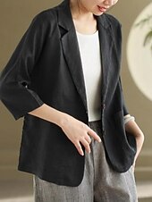 $35.99 - Women's Blazer Comfortable Breathable Pocket Vintage Casual Plain Office Street Casual Daily Wear Single Breasted Regular Turndown Regular Fit 3/4 Length Sleeve Outerwear Black White Khaki Summer Fall 2025. Shop for cheap Blazers & Suits online? Buy at lightinthebox.com on sale today!