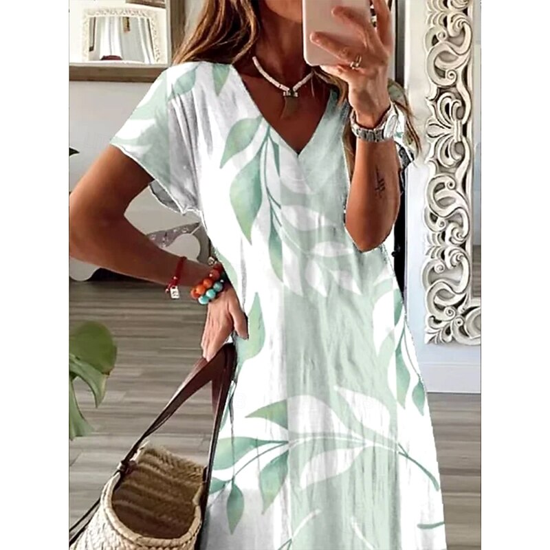 HOT ! Women's Maxi Dress Casual Dress Sundress A Line Dress Elegant Vacation Casual Holiday Beach Regular Fit Ombre Floral Graphic Short Sleeve V Neck Light Green Sky Blue Summer Spring