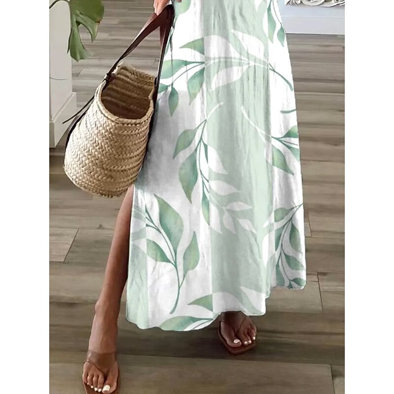 Women's Maxi Dress Casual Dress Sundress A Line Dress Elegant Vacation Casual Holiday Beach Regular Fit Ombre Floral Graphic Short Sleeve V Neck Light Green Sky Blue Summer Spring 2