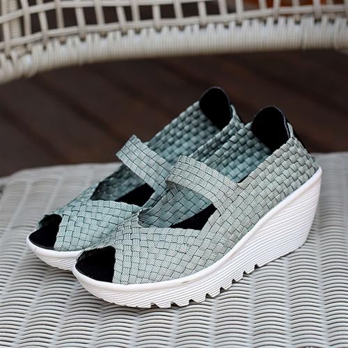 Women's Elastic Woven Pumps Mary Jane Shoes Platform Wedge Sandals Comfortable Walking Shoes 6