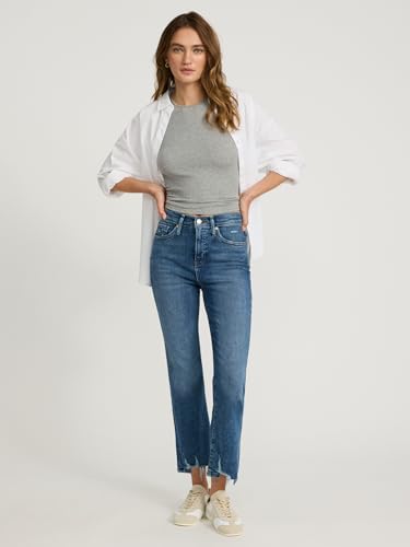 HOT ! EXPRESS Women’s Cropped Flare Jeans – High Waisted Stretch Denim, Raw Hem – Medium Wash