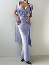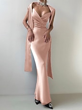 More information about 2-in-1 Dress Cape Dress Mermaid / Trumpet Evening Gown Elegant Dress Formal Semi Formal Dress Wedding Floor Length Sleeveless V Neck Satin Backless with Bow(s) Pleats Slit