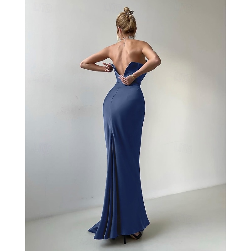 2-in-1 Dress Cape Dress Mermaid / Trumpet Evening Gown Elegant Dress Formal Semi Formal Dress Wedding Floor Length Sleeveless V Neck Satin Backless with Bow(s) Pleats Slit 11