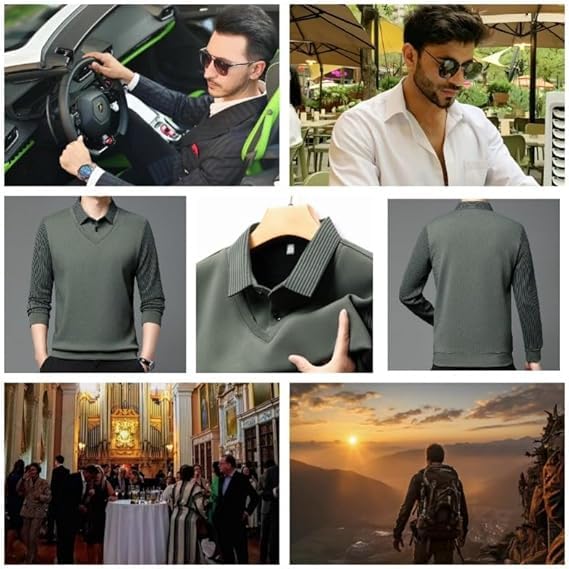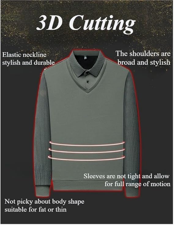 • 【Men' Fake 2-Pieces Knitted Pullove】Men'S Fake Two-Piece Knitted Shirt, Made Of Soft And Smooth Fabric, Ensuring You Experience Unlimited Comfort. The Fabric Also Has Quick-Recovery Properties After Stretching.