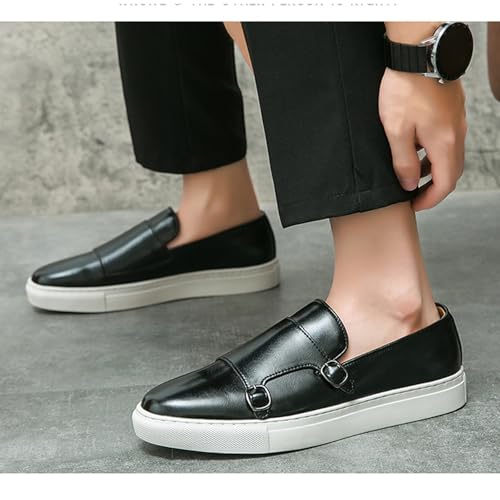 Men's Leather Double Buckle Platform Loafers Classic Round Toe Slip-On Non-Slip Business Dress Shoes for Formal Party Wedding Penny Loafers 6