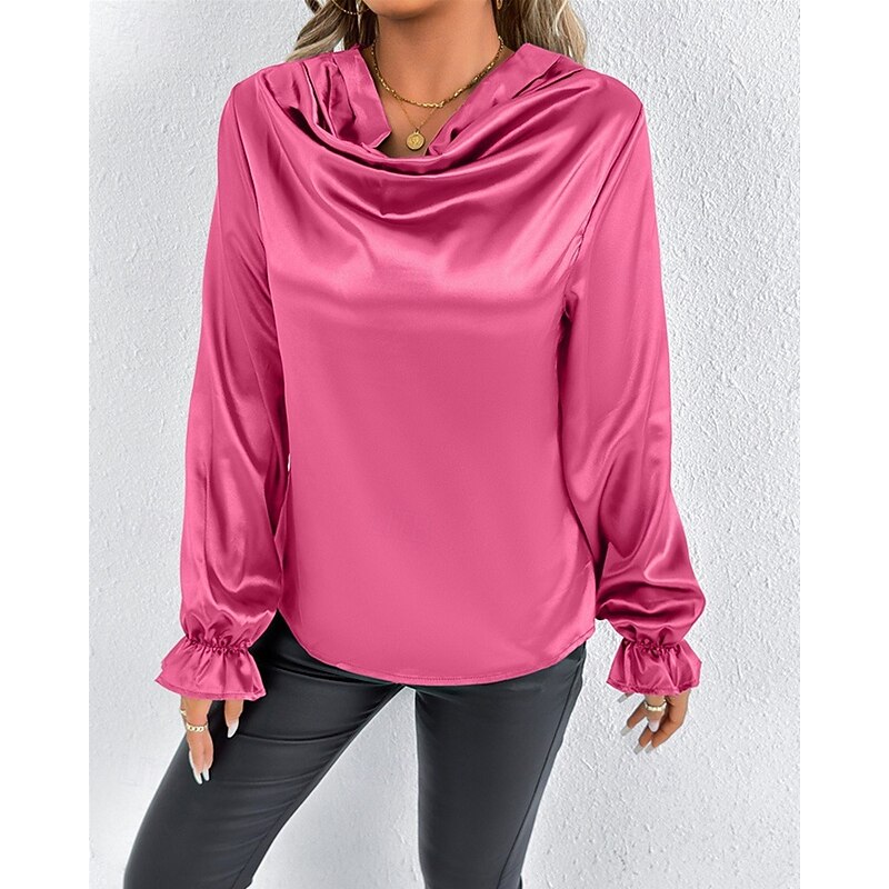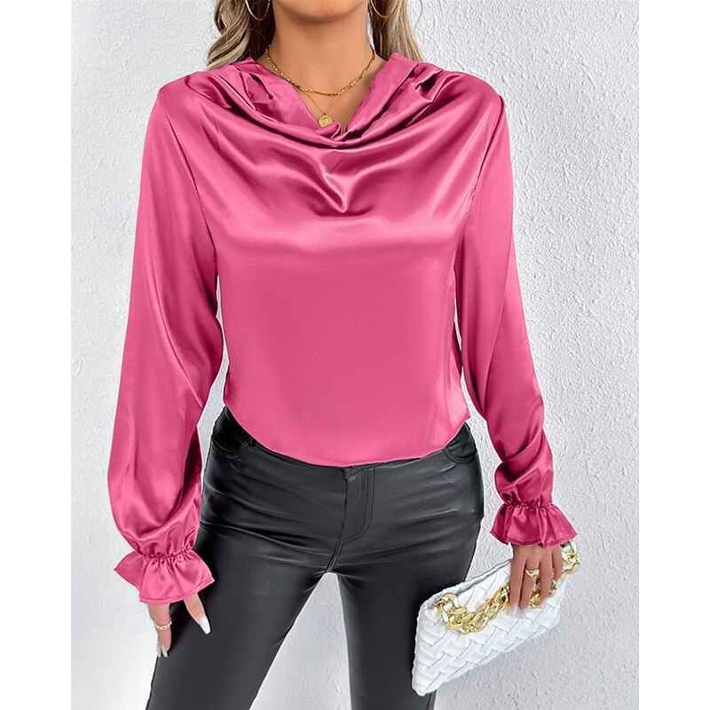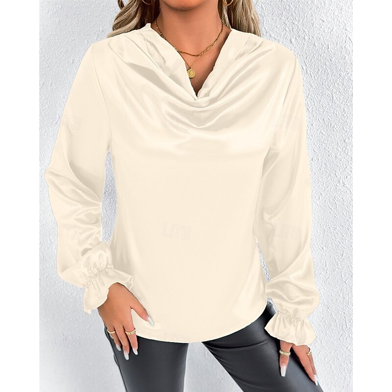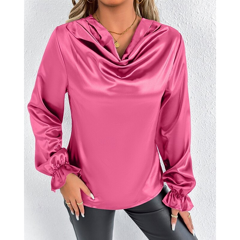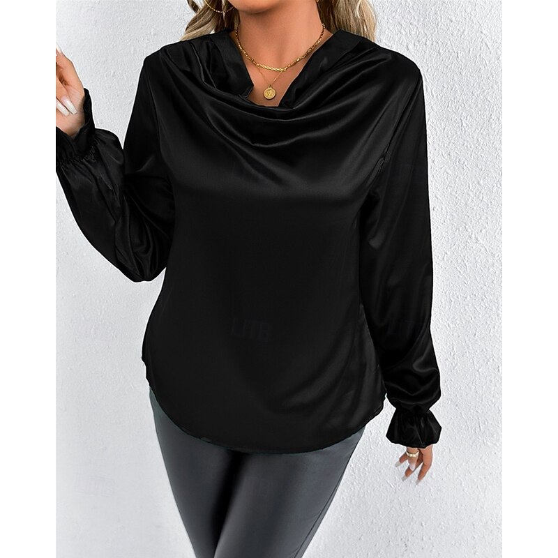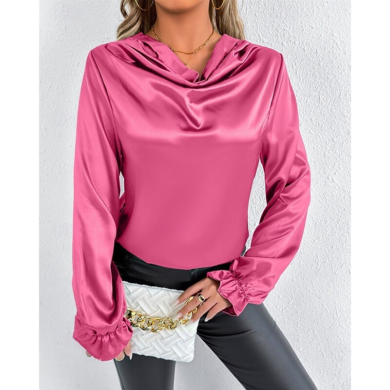 More information about Women's Shirt Elegant Dressy Satin Solid Color Stylish Casual Long Sleeve Cowl Neck Regular Tops Daily Going out Draped Black Pink Green Apricot Spring Fall