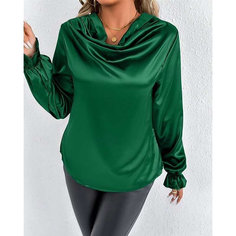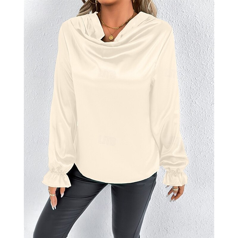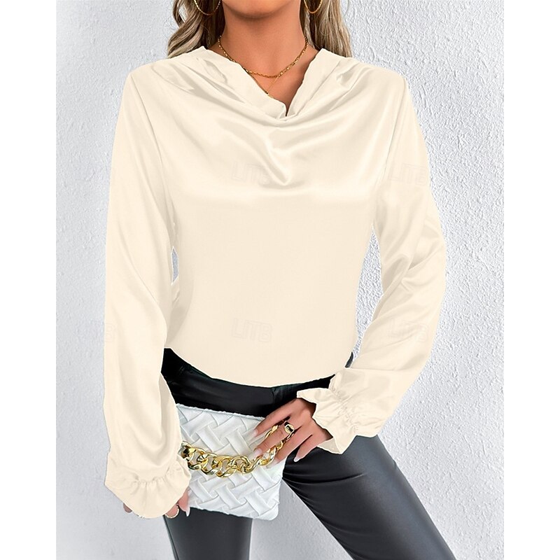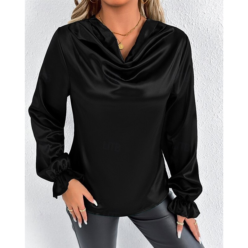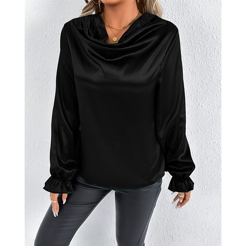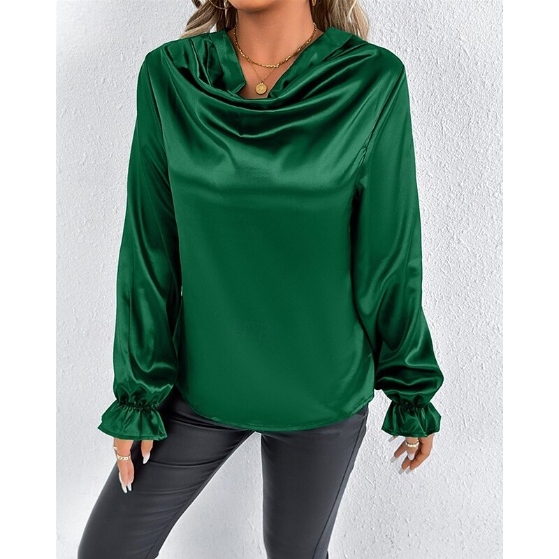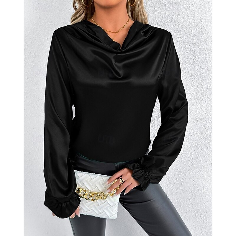 More information about Women's Shirt Elegant Dressy Satin Solid Color Stylish Casual Long Sleeve Cowl Neck Regular Tops Daily Going out Draped Black Pink Green Apricot Spring Fall