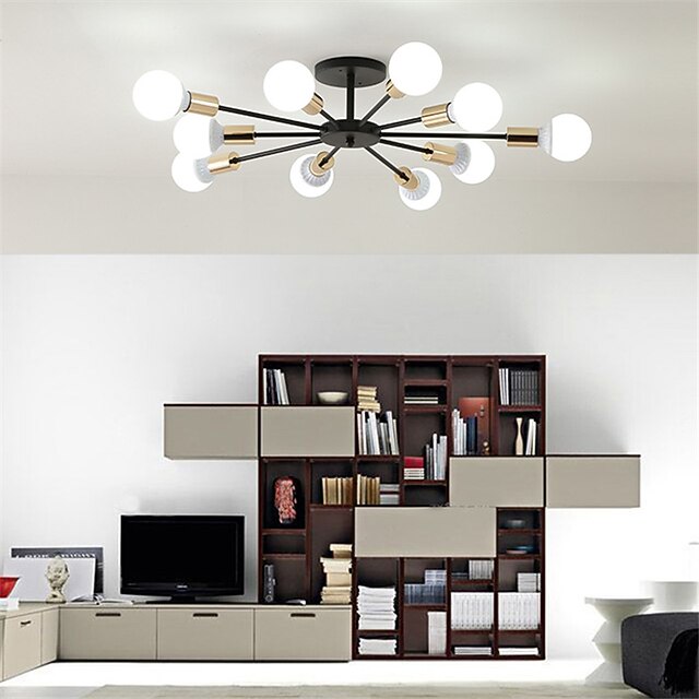 10-Light 10-Head Vintage Metal Semi Flush Mount Ceiling Light LED Nordic Personality and Creative Style Living Room Dining Room Lighting Painted Finish 60W 6