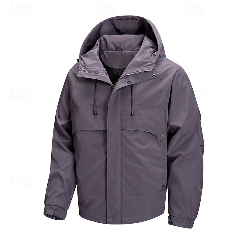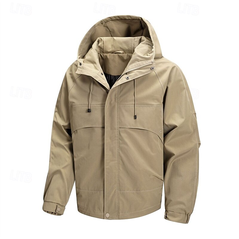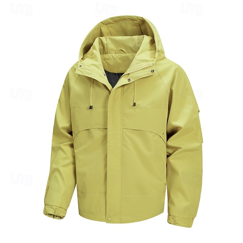 More information about Men's Outdoor Jacket Raincoat Hiking Jacket Daily Hiking Windproof Rainproof Pocket Spring Fall Plain Fashion Classic Hooded Regular Black Yellow Light Purple Green Khaki Jacket