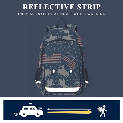 Cowboys Riding Bulls Horse Riders American Usa Flags Backpack School Bag Lightweight Laptop Notebook Tablet Backpack Students Travel Bookbag with Reflective Stripes 5
