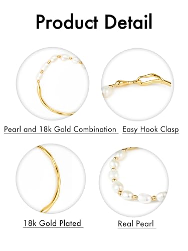 White Freshwater Pearl Bangle Bracelet for Women 18k Gold Plated Dainty Cuff Bangle Hook Bracelet Pearl Beaded Chain Bracelet Ideal Jewellery Gift for Girlfriend Mother 5
