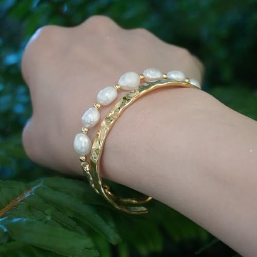 • Premium Quality : This pearl bangle is a stunning piece that marries classic elegance with a touch of modern flair. Plated with 18k gold, it features a wavy textured half - band, which exudes a sense of fluidity and luxury. The gold plating is meticulously applied, offering a rich, long lasting luster that mimics the look of solid gold.