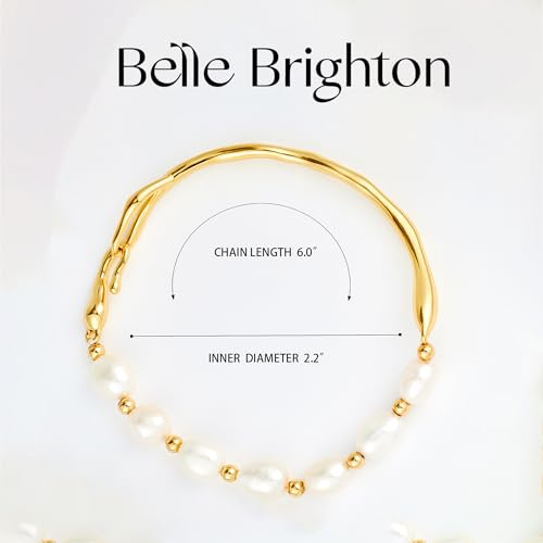 White Freshwater Pearl Bangle Bracelet for Women 18k Gold Plated Dainty Cuff Bangle Hook Bracelet Pearl Beaded Chain Bracelet Ideal Jewellery Gift for Girlfriend Mother 6
