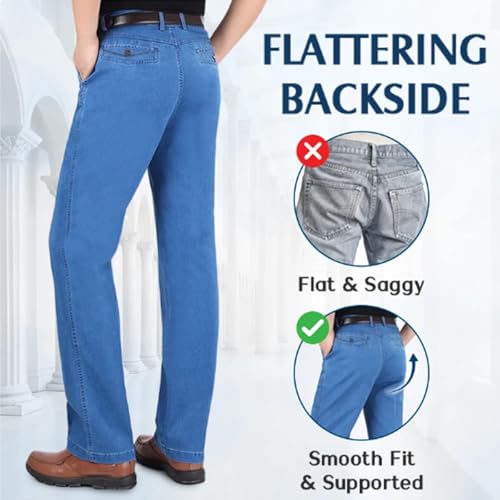 HOT ! Senistyle Jeans for Men, Soft Flexible High Waist Loose Denim, Men's Classic Straight Fit Stretch Jeans for Older