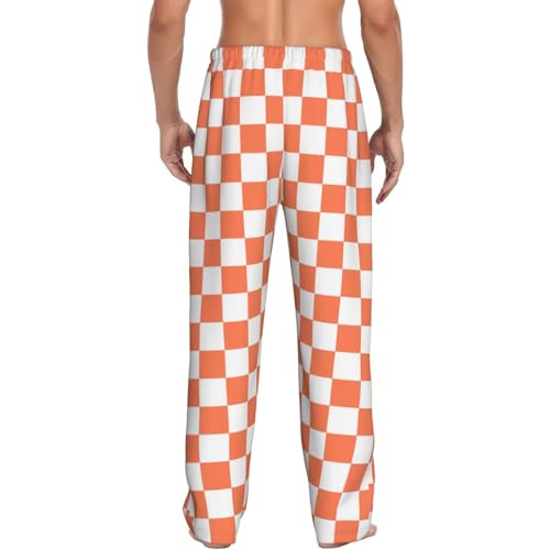 HOT ! Novastar Mens Pajama Pants Bottoms with Pockets- white orange squares checkerboard Soft Men Pj Pants, Comfy Men Lounge Pants