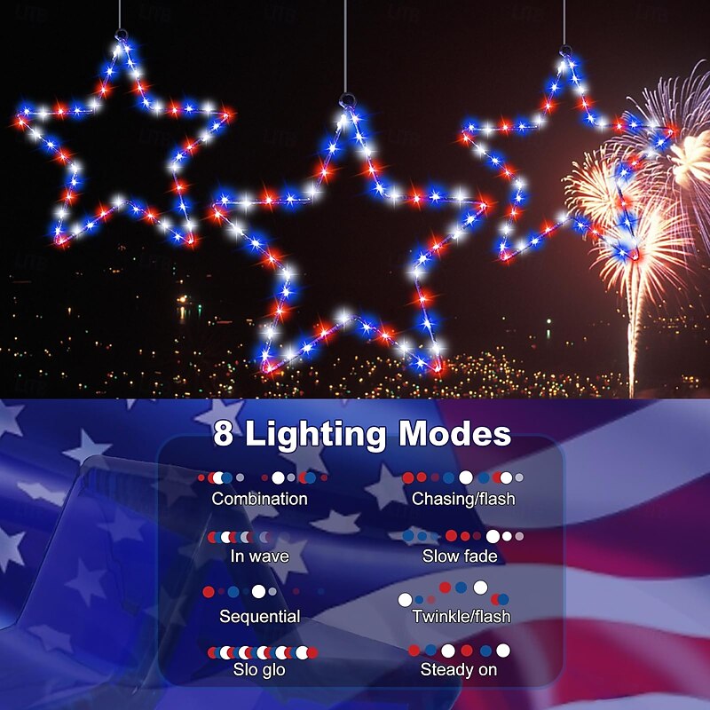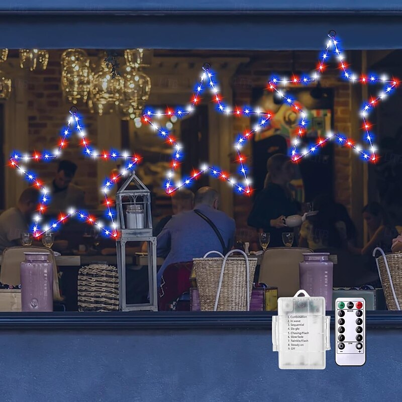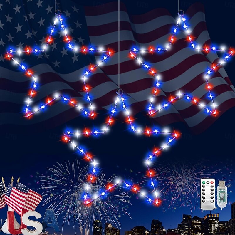 $11.49 - 1 Pc Patriotic Hanging Lights Wrought Iron Red, White, Blue Five Pointed Star July 4th American Independence Day Showcase Courtyard Balcony Porch Party Patriotic Atmosphere Remote Control 2025. Shop for cheap USB String Lights online? Buy at lightinthebox.com on sale today!