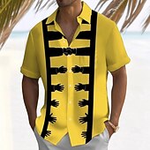 More information about Men's Striped Funny handshaking Shirt Summer Shirt Button Up Shirt Short Sleeve Fashion Casual Outdoor Vacation Dailywear Summer Spring Turndown 3D Print Collared Shirts Front One Pocket Yellow
