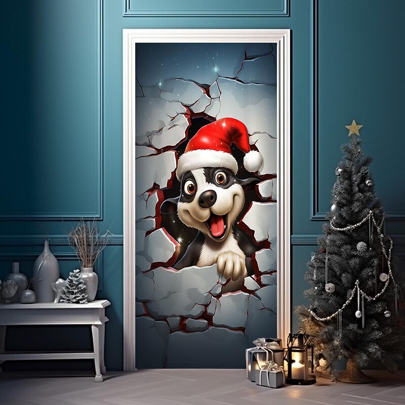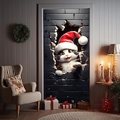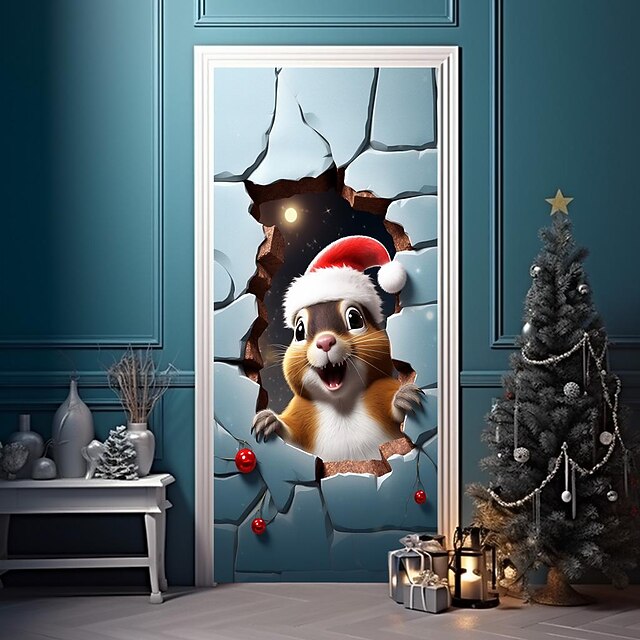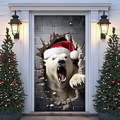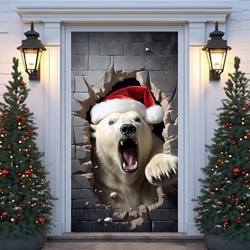 HOT ! Christmas Door Decorations Animal Broken Door Covers Door Tapestry Door Curtain Decoration Xmas Backdrop Door Banner for Front Door Holiday Party Decor Supplies