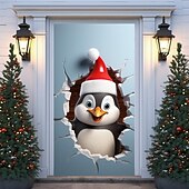 More information about Christmas Door Decorations Animal Broken Door Covers Door Tapestry Door Curtain Decoration Xmas Backdrop Door Banner for Front Door Holiday Party Decor Supplies