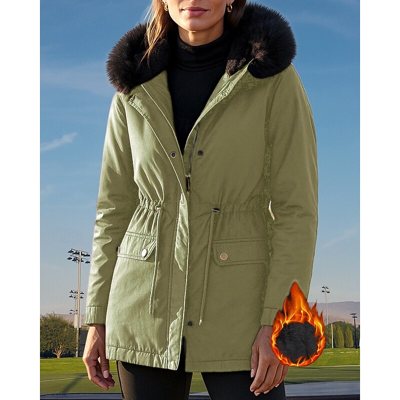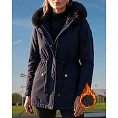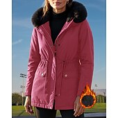 More information about Women's Hooded Fleece Jacket Winter Coat Pocket with Fur Hood Long Sleeve Top Athleisure Fall Solid Colored Cotton Windproof Thick Warm Outdoor Travel Vacation Sportswear Activewear Black Pink Green