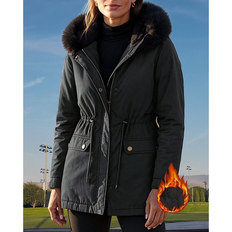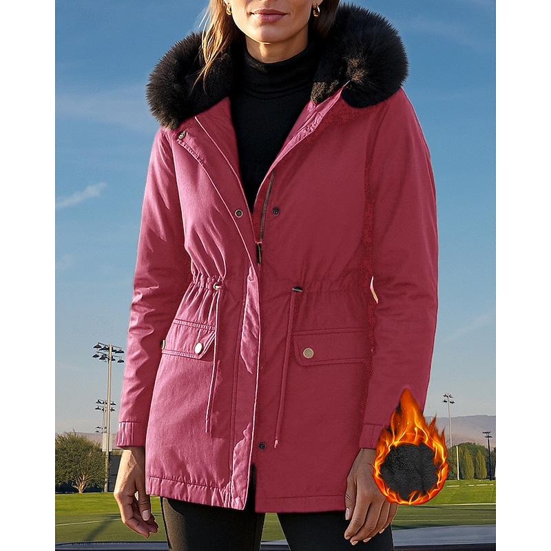 $60.99 - Women's Hooded Fleece Jacket Winter Coat Pocket with Fur Hood Long Sleeve Top Athleisure Fall Solid Colored Cotton Windproof Thick Warm Outdoor Travel Vacation Sportswear Activewear Black Pink Green 2025. Shop for cheap Tracksuits online? Buy at lightinthebox.com on sale today!