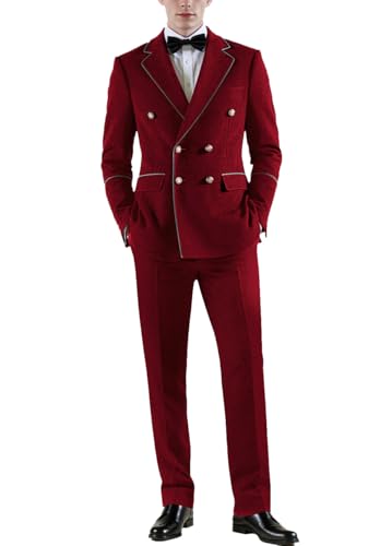 UNINUKOO Double Breasted Suit Men Velvet traditional Fit Formal Dinner Party Wedding 2 Piece Business Suits for Men US Size L Burgundy